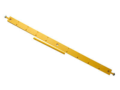 Рычаг-линейка представляет собой профилированную линейку длиной 50 см, на лицевой стороне которой нанесена шкала с ценой деления 1 см, оцифрованная от середины через каждые 5 см. На концах линейки имеются уравнительные винты с гайками, в середине – отверстие для оси. Под оцифровкой сделаны отверстия для подвешивания грузов.