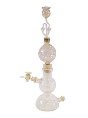Аппарат Киппа используется для получения водорода и углекислого газа. Состоит из сосуда и шаровой воронки, сообщающихся между собой. Когда воронка вставлена в сосуд, между её трубкой и суженным местом сосуда получается зазор, через который полушар сообщается с шаром. Сообщение прибора с внешней средой осуществляется благодаря тубусу. Подробнее