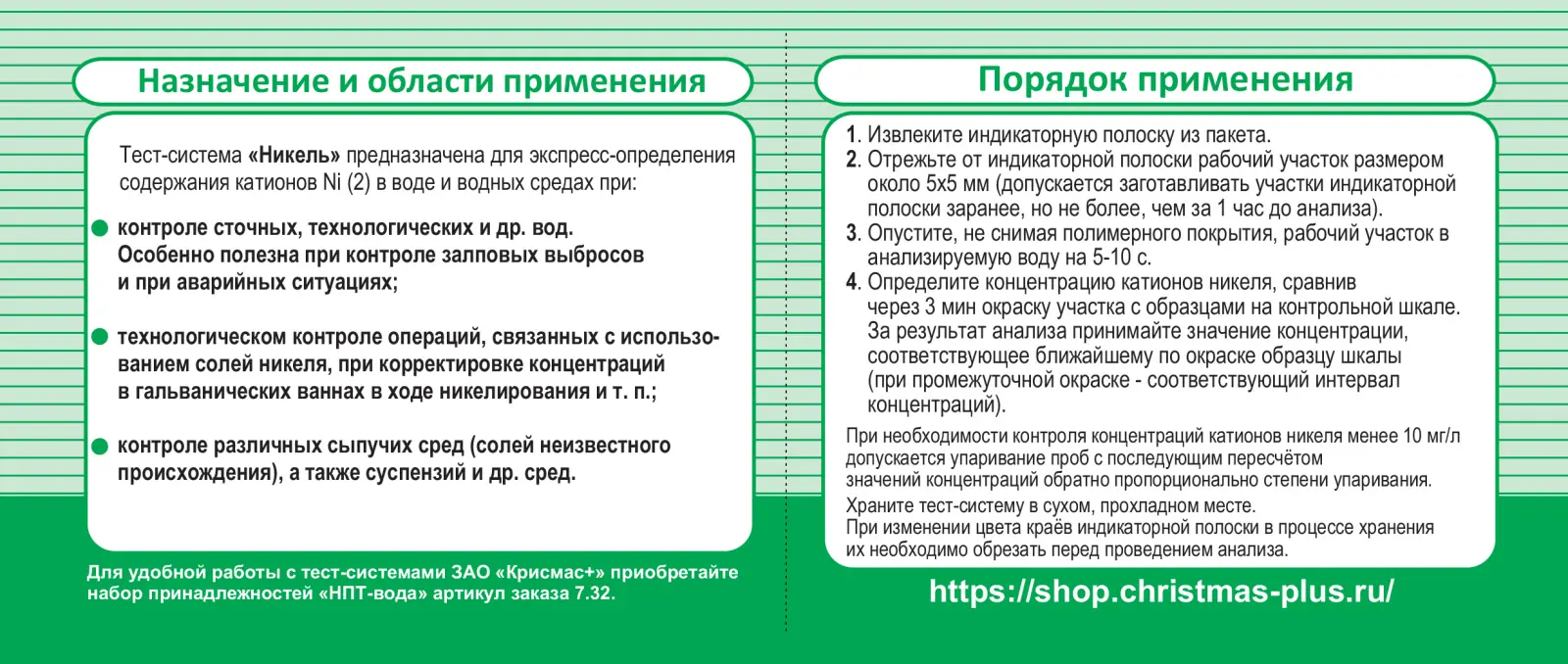 оперативном технологическом экспресс-контроле операций, связанных с использованием солей никеля на химических, металлообрабатывающих заводах, в гальванических цехах, при очистке сточных вод и др;
