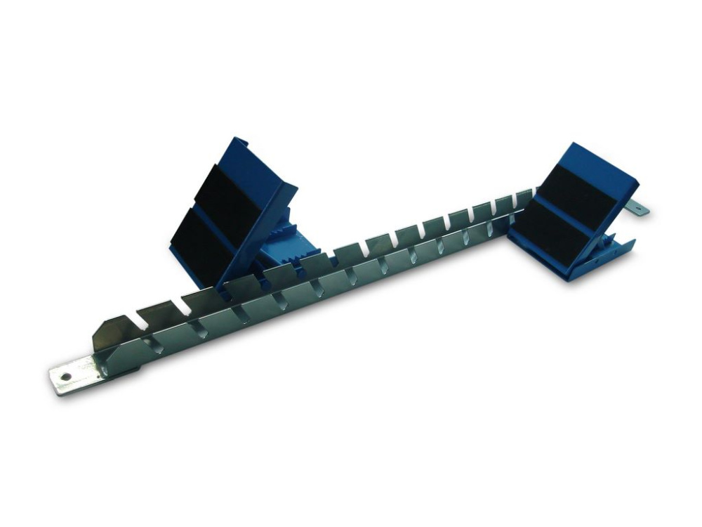 Изготовлены из стали. Основание - блок с 16 пазами для фиксации левой и правой колодок.(длина 955мм, ширина 40мм, шаг деления 50мм). Колодки регулируются по углу наклона 5 положений и имеют резиновые накладки.