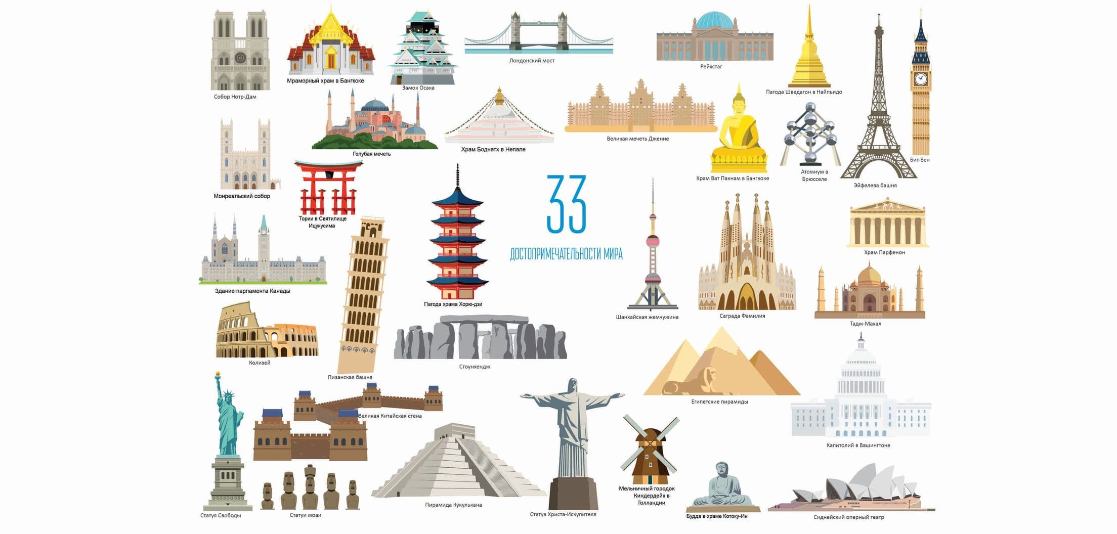 Достопримечательности мира (33 шт.) + плакат