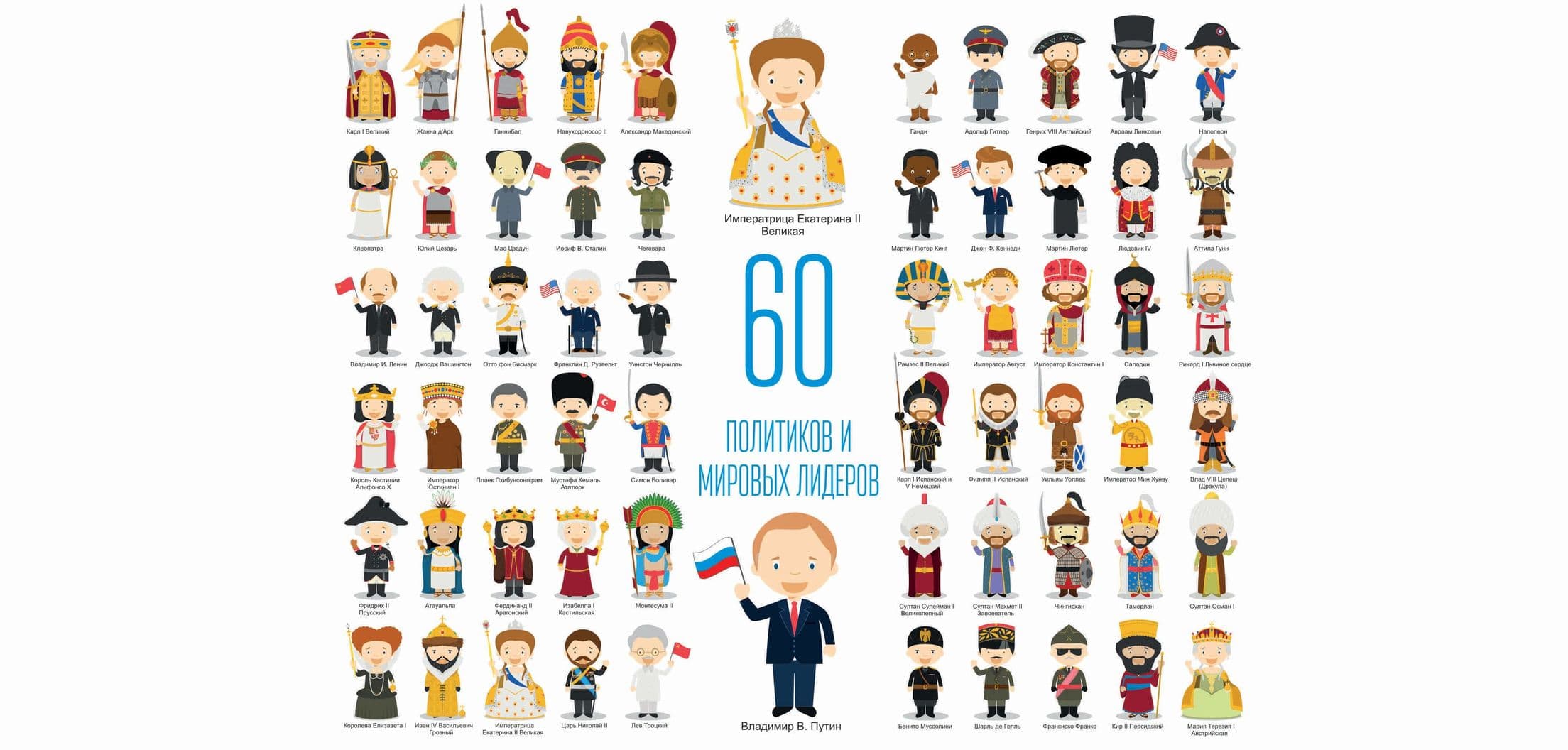 Исторические и современные лидеры стран (60 шт.) + плакат