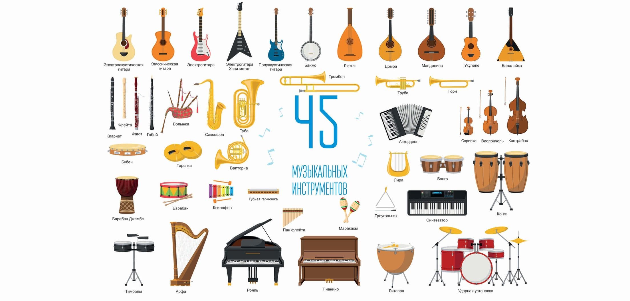 Музыкальные инструменты (45шт.) + плакат