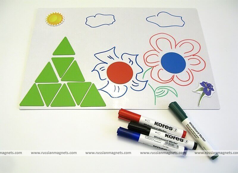 Размер поля A4 21 см х 29 см, А3 30 см х 43 см. В комплекте магнитное поле в полиэтиленовой упаковке. На поверхности не остается царапин, следов и разводов от маркера.