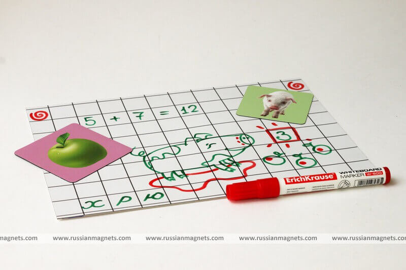 Размер поля A4 21 см х 29 см, А3 30 см х 43 см. В комплекте магнитное поле в полиэтиленовой упаковке. На поверхности не остается царапин, следов и разводов от маркера.
