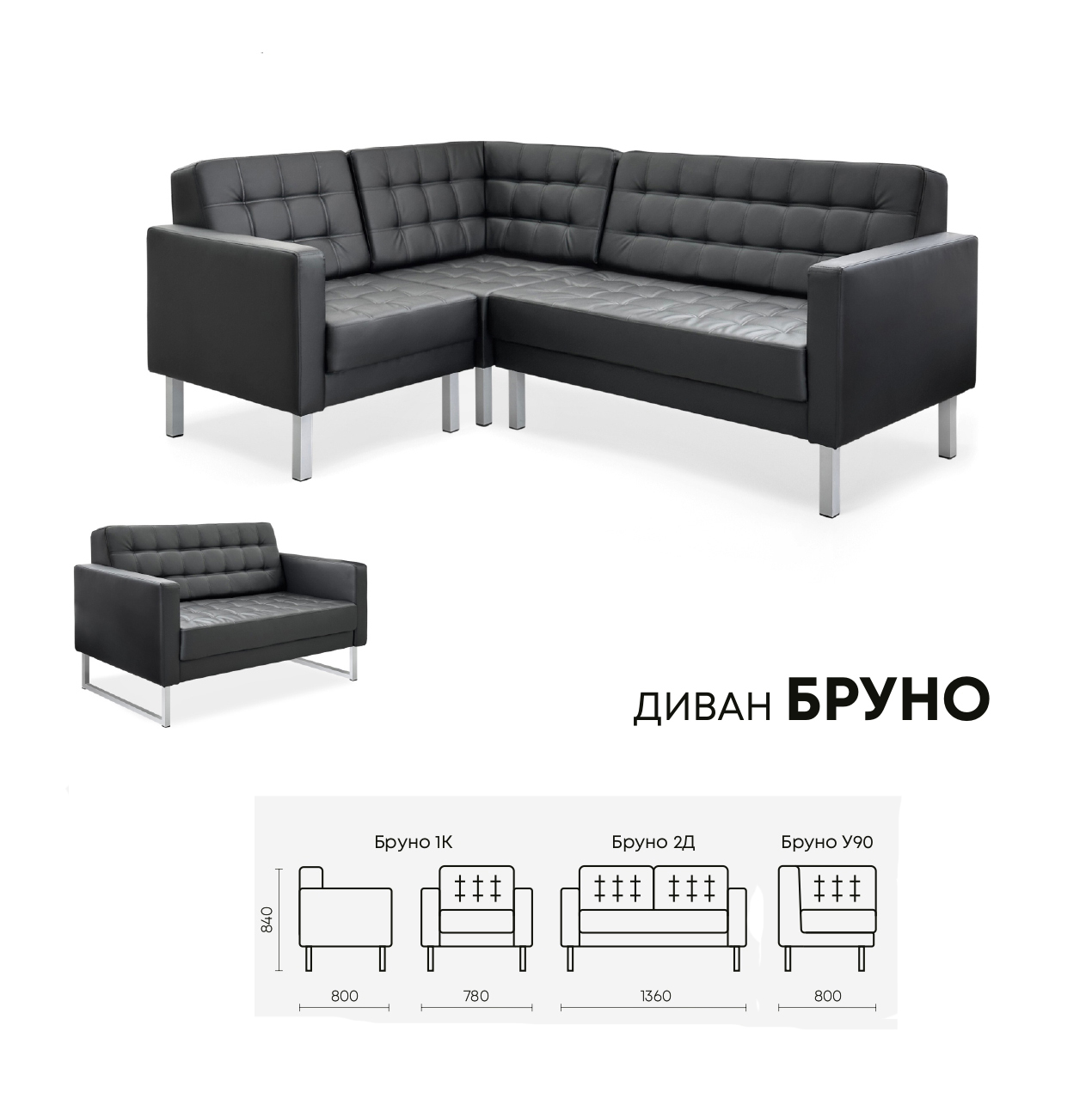 - Диван 2-х местный на металло-каркасе 1360 х 800 х 860