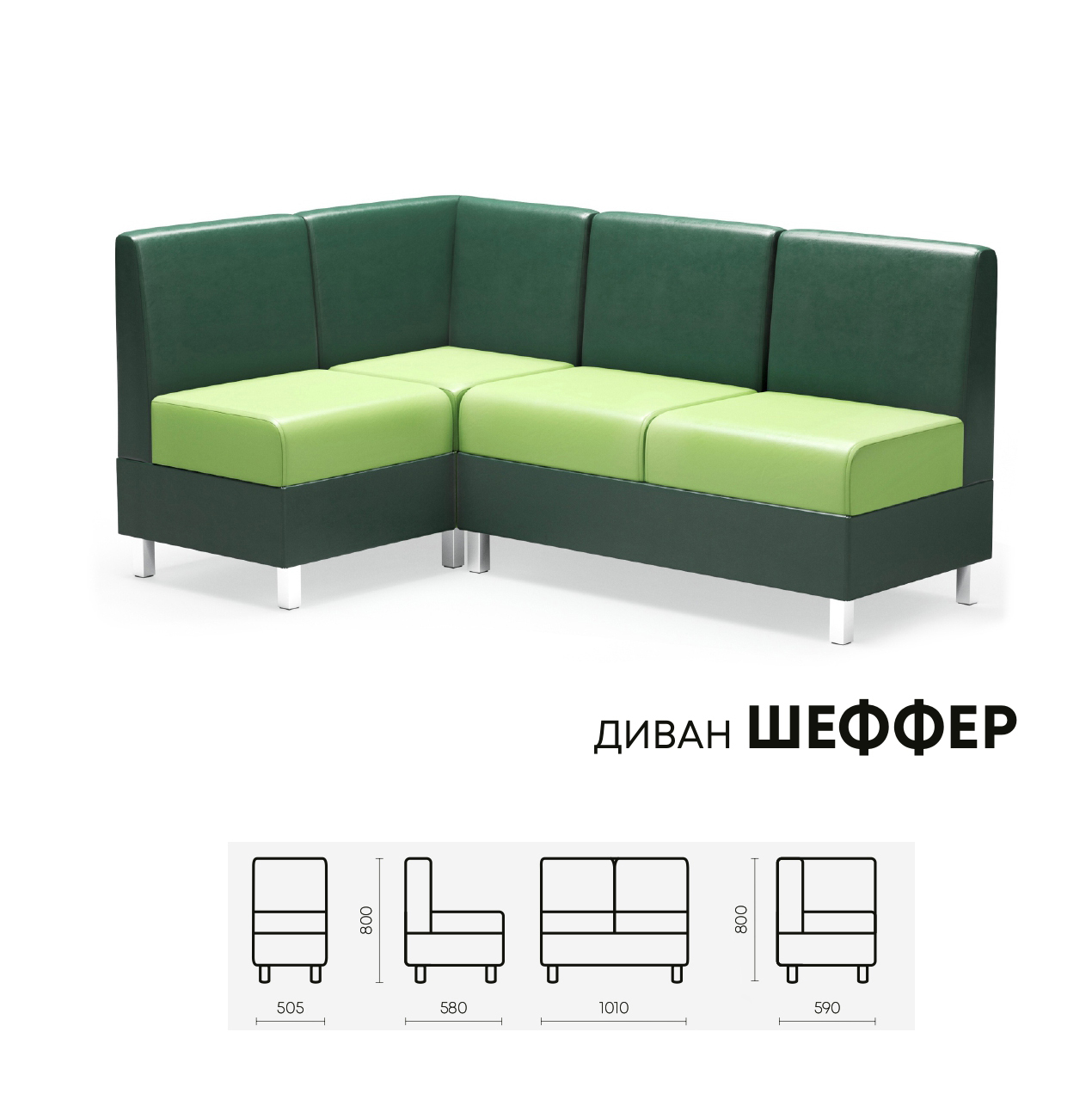 - Диван двузсекционный, 1010 x 580 x 800h