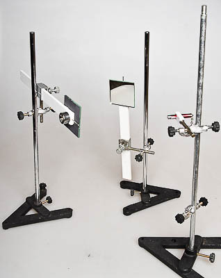 Для проведения демонстраций необходимы 3 штатива с разными муфтами (для вертикального и горизонтального крепления лапок) и экран (в качестве экрана может быть использована светлая стена кабинета).