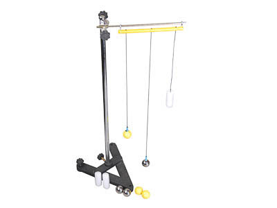В пластмассовые шарики вкручены шурупы для удержания их на магнитном подвесе. Чтобы подвесить пенопластовый цилиндр, в его прорезь вставляют подвес и обжимают его. Для проведения демонстраций необходим штатив.