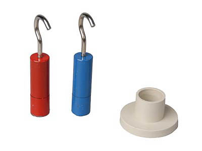 Одинаковые цилиндры диаметром 17 мм и длиной около 60 мм имеют стальную часть с крючком для подвешивания груза и свинцовую часть длиной 20 мм. Снабжены стругом для зачистки торцов свинцовых частей цилиндров.