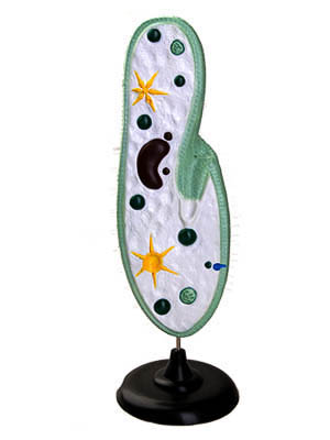 Модель изготовлена из пластмассы, раскрашена. Демонстрирует внешнее и внутреннее строение инфузории-туфельки.