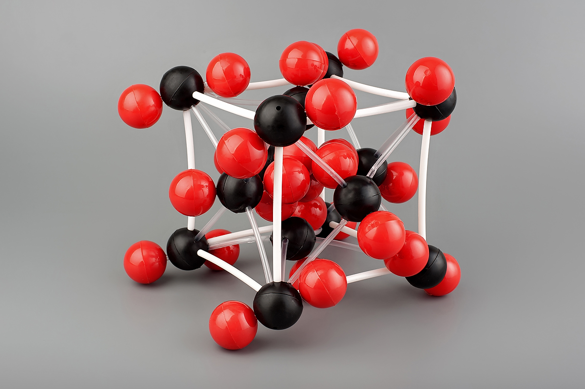 Кристаллическая решетка углерода. Кристаллическая решетка углерода предназначена для демонстрации атомной структуры кристаллической решетки углерода в рамках изучения курса химии в общеобразовательных учреждениях. Модель состоит из пластмассовых шаров черного и красного цвета, обозначающих атомы, стержней, обозначающих связи. Подробнее