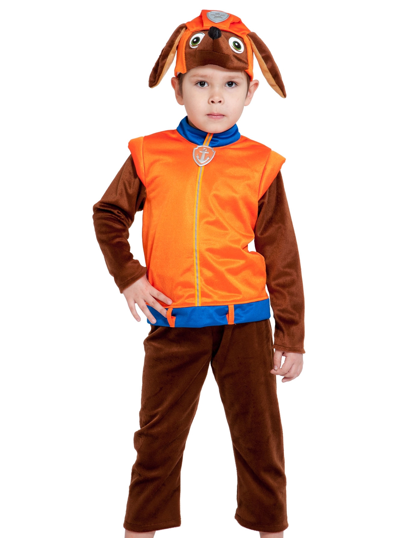 маска-шапочка из плюша и ткани, куртка-жилет из ткани с рукавами из плюша, плюшевые бриджи