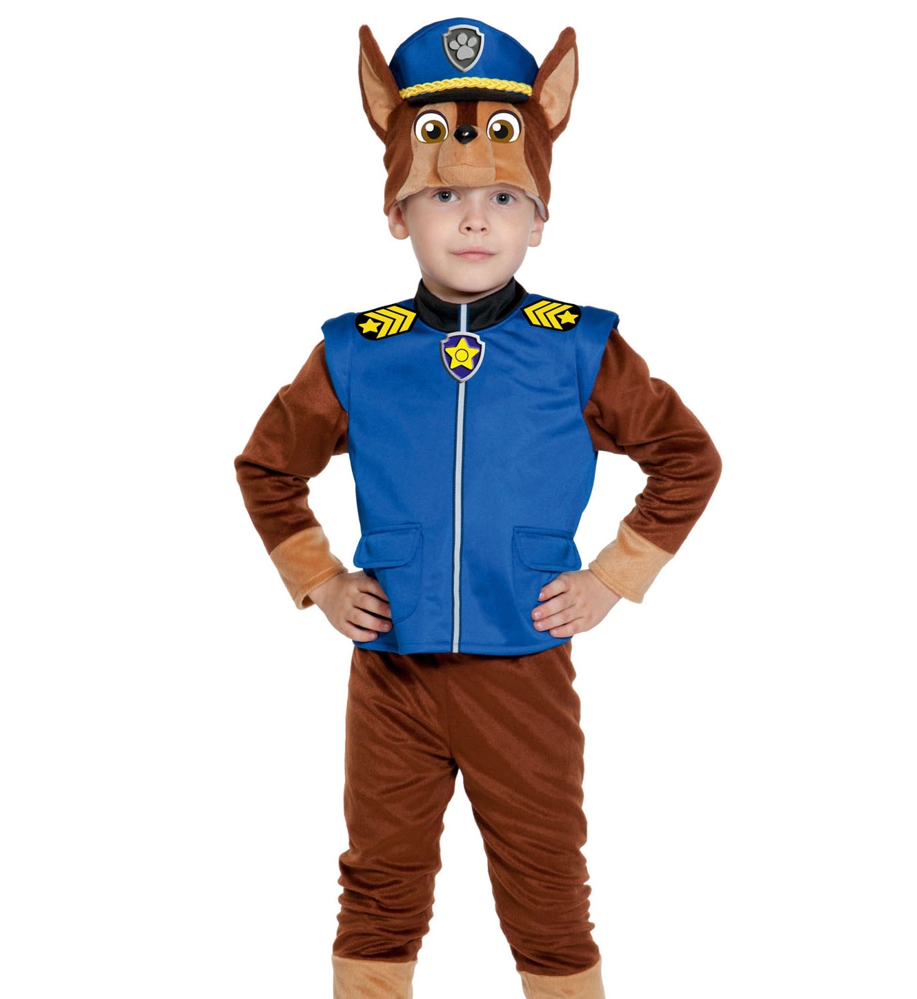 маска-шапочка из плюша и ткани, куртка-жилет из ткани с рукавами из плюша, плюшевые бриджи