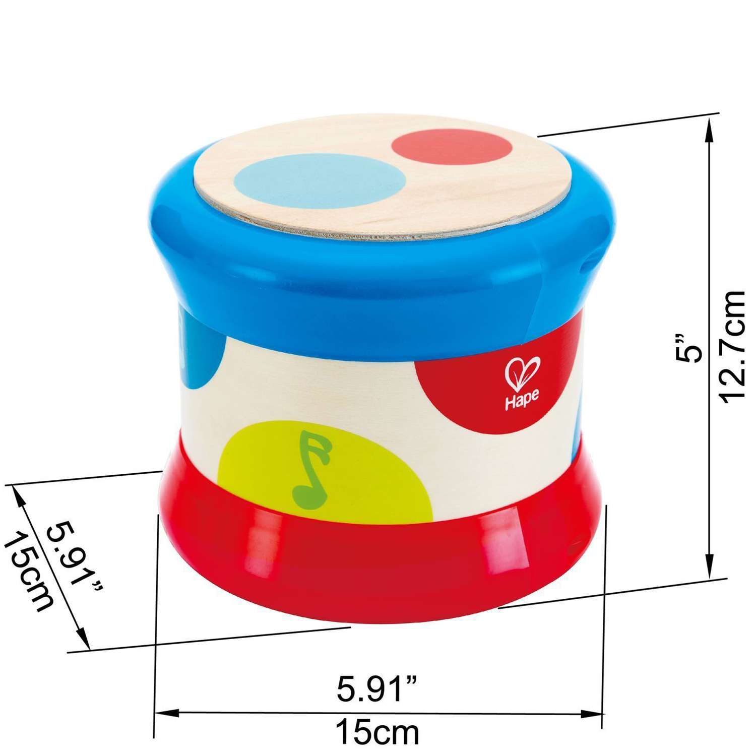 Благодаря вращающемуся детскому барабану ребенок с самого раннего возраста прикоснется к миру музыки и ритма. Круглая форма игрушки позволяет катать его, стимулируя ребенка ползти за игрушкой. При вращении игрушка производит забавную барабанную мелодию и световое шоу. В вертикальном положении в Детский барабан можно бить, как в барабан, при этом каждый цветной кружок воспроизводит разные звуки барабана, при нажатии светится разноцветным светом.