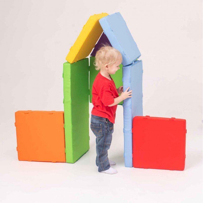 Магнитный мягкий крупноблочный конструктор Маграник, комплектация Оптимальный, цветовая схема Акварель, непромокаемая моющаяся ткань Оксфорд, типоразмер 40см, 10 деталей, более 40 строений, сцепка через магниты в кармашках по принципу каждый с каждым, совместим с МубиКуби Подробнее