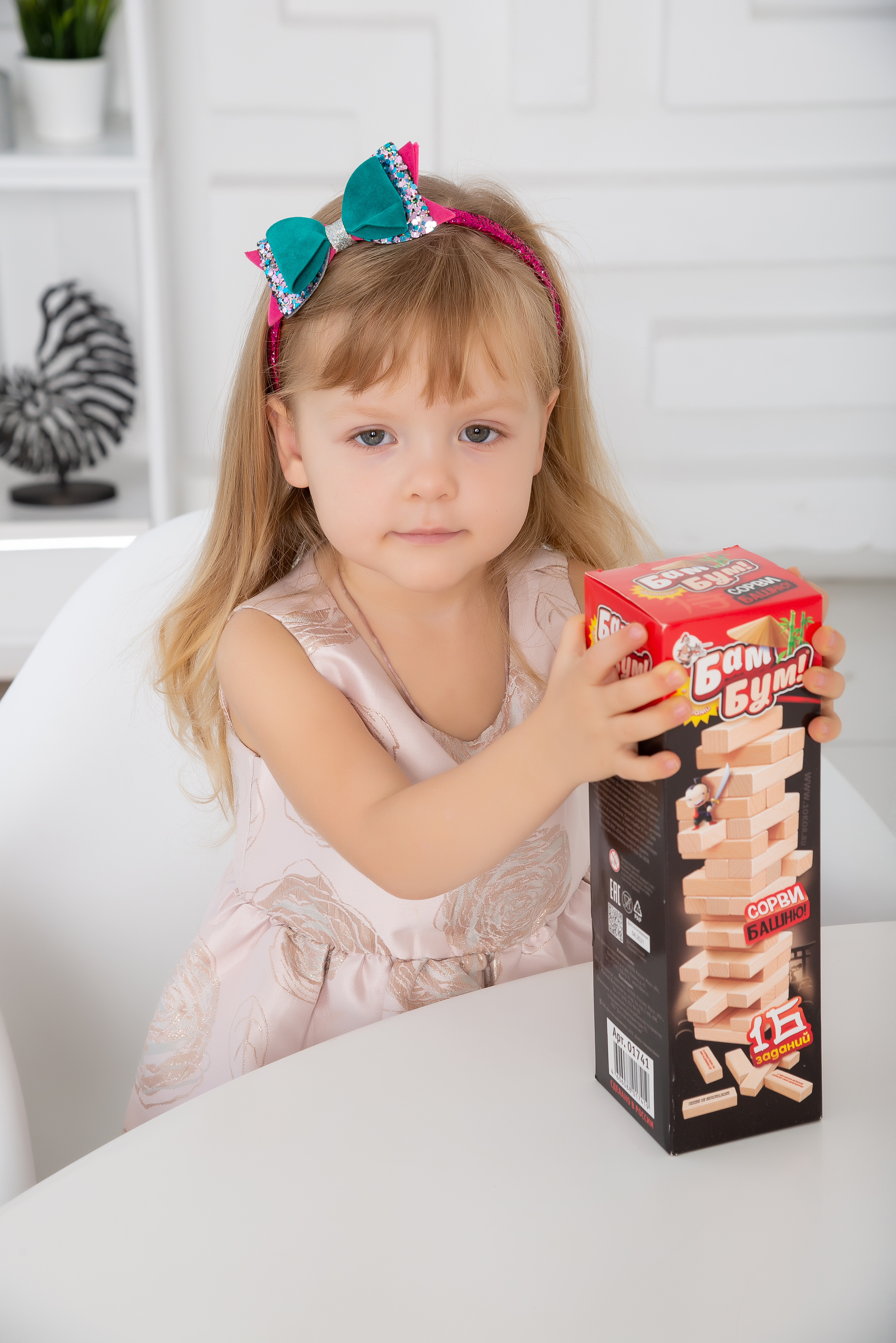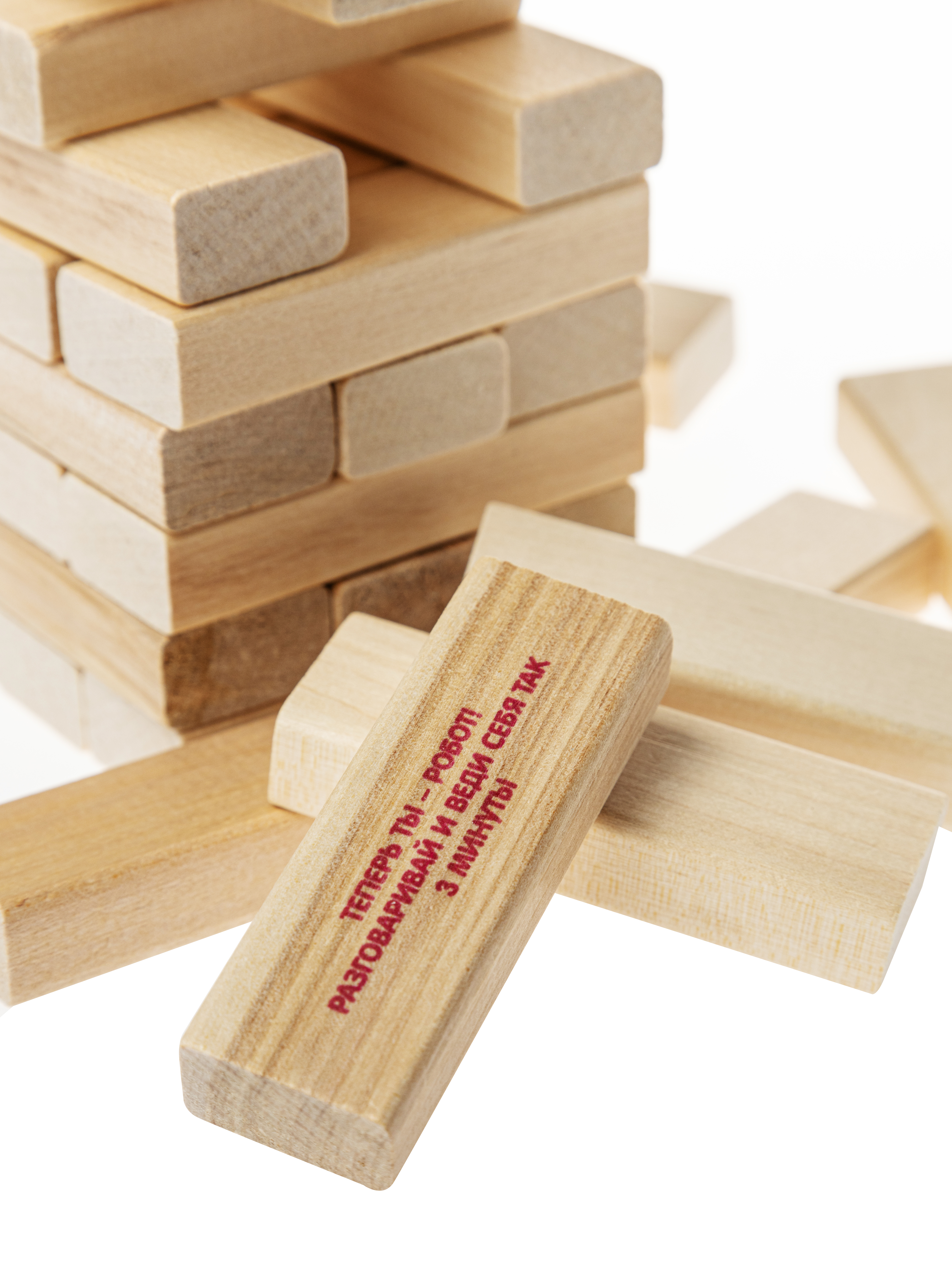картонный уголок для сборки башни — 1 шт. Игра предназначена для детей от 7 лет и рассчитана на 2 и более игроков. Материал: дерево, картон. Упаковка из ламинированного картона. Игра развивает моторику, коммуникативные навыки, смекалку и воображение.