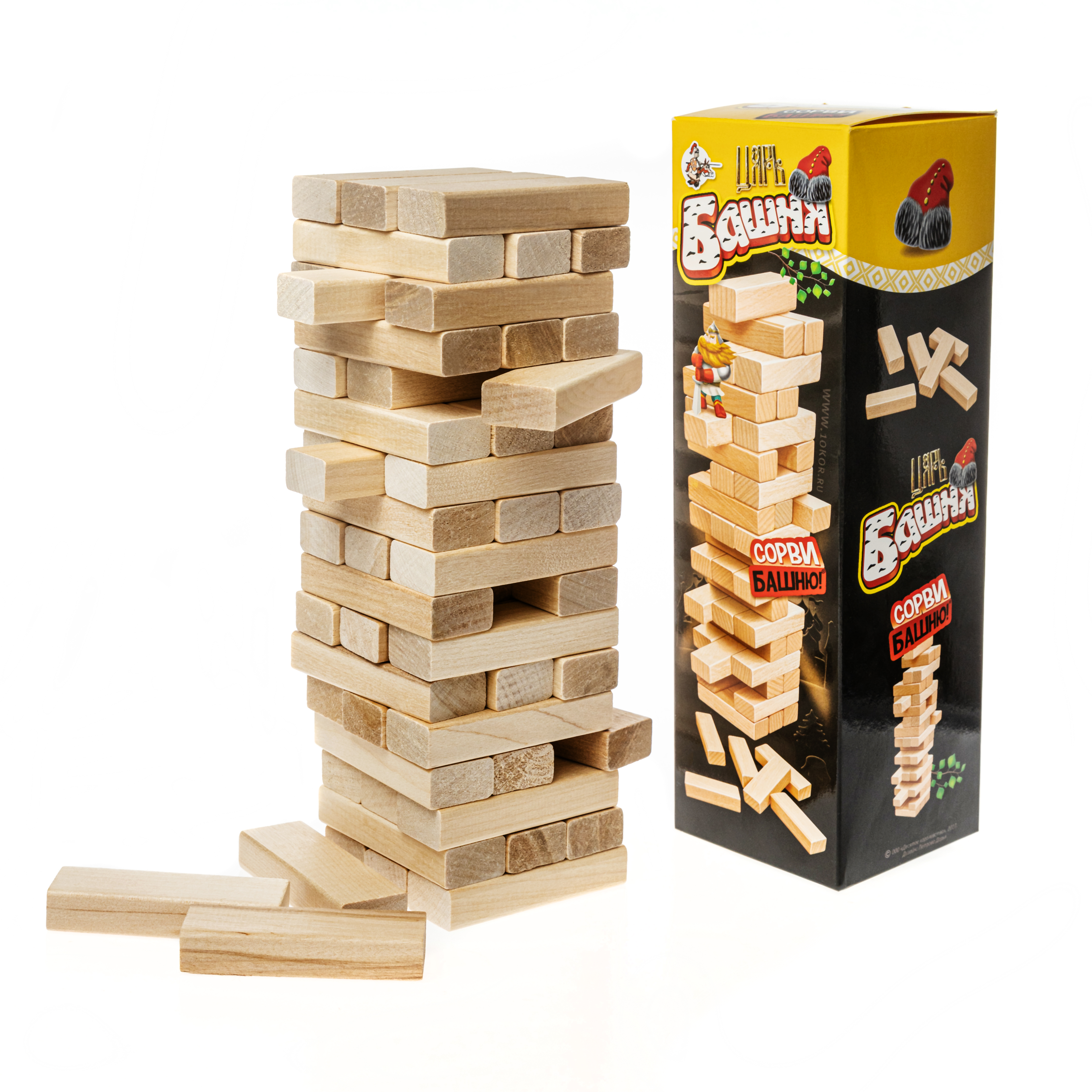 Настольная игра «Царь-башня». Состав: деревянные неокрашенные брусочки – 54 шт. (75 х 14 х 25 мм), уголок для сборки башни – 1 шт. Материал: дерево. Рекомендовано для детей от 5 лет. Развивает ловкость рук, смекалку, воображение, пространственное мышление.