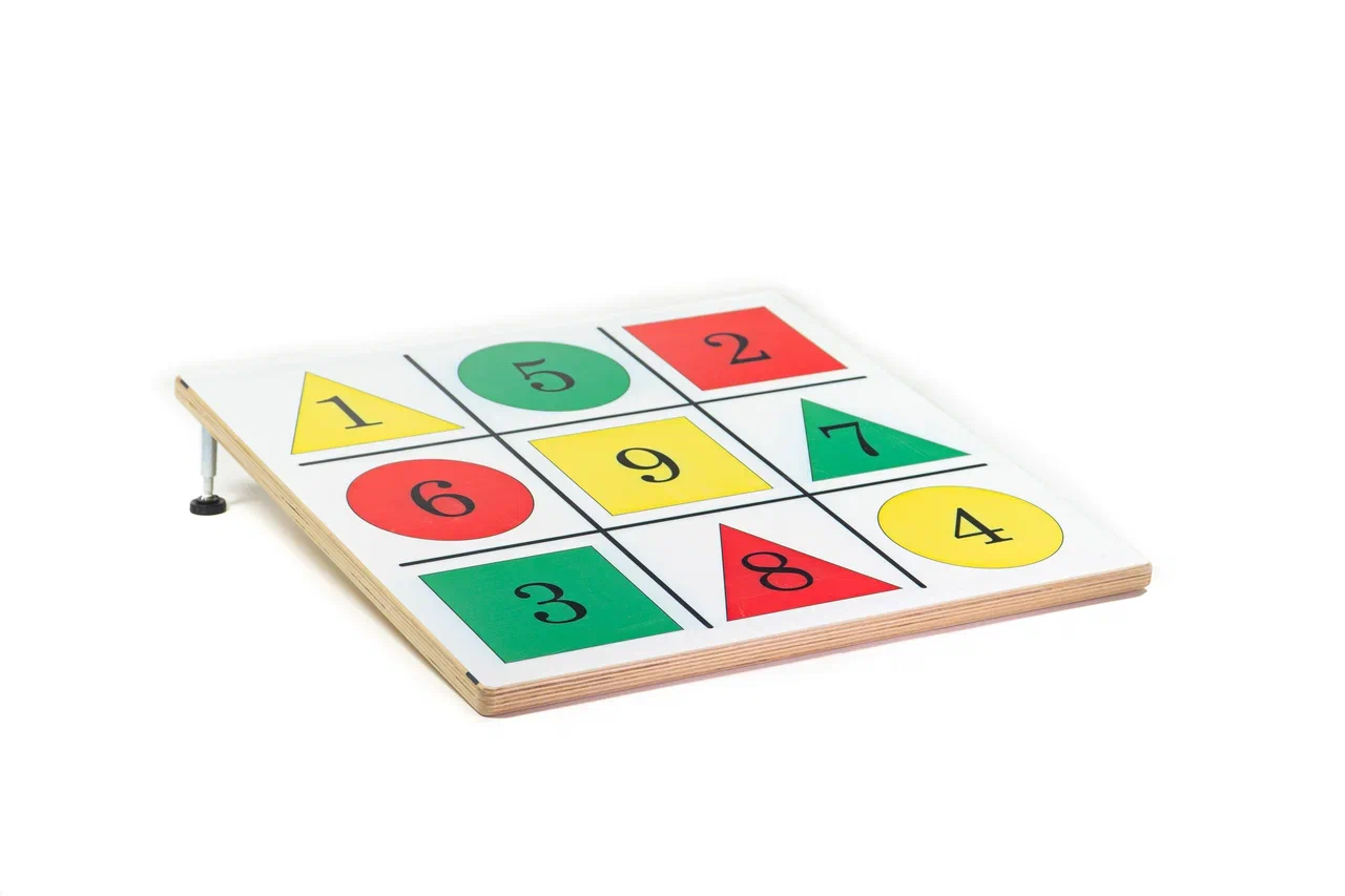 Размер поверхности мишени 46х46см, размер ножек: 14см и 7см, вес мишени 2,5кг, деревянные ножки (2 типа-большие и маленькие). Мишень поделена на 9 секторов, которые отмечены цифрами, цветами и фигурами, поставляется в коробке.