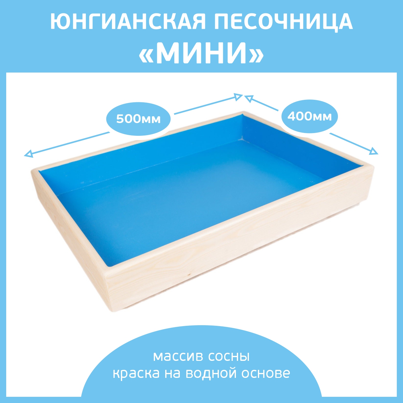 Юнгианская песочница, выполняется из массива сосны – экологически чистого материала, безопасного для детей. Стол имеет рабочую поверхность покрытую краской на водной основе. Вся внешняя часть обработана - имеет гладкую поверхность без острых углов и шероховатостей.