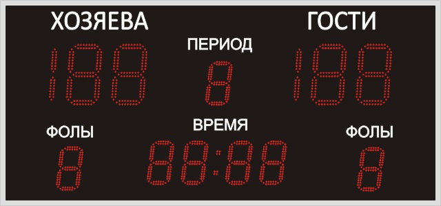 Возможности вывода:время игры, счет,период, фолы, звуковая сирена
