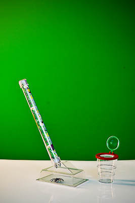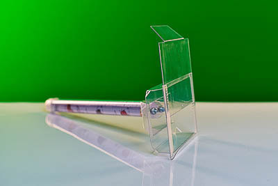 Складной стакан имеет две линзы и предназначен для детального изучения насекомых. В крышке имеются отверстия для сообщения с атмосферой.