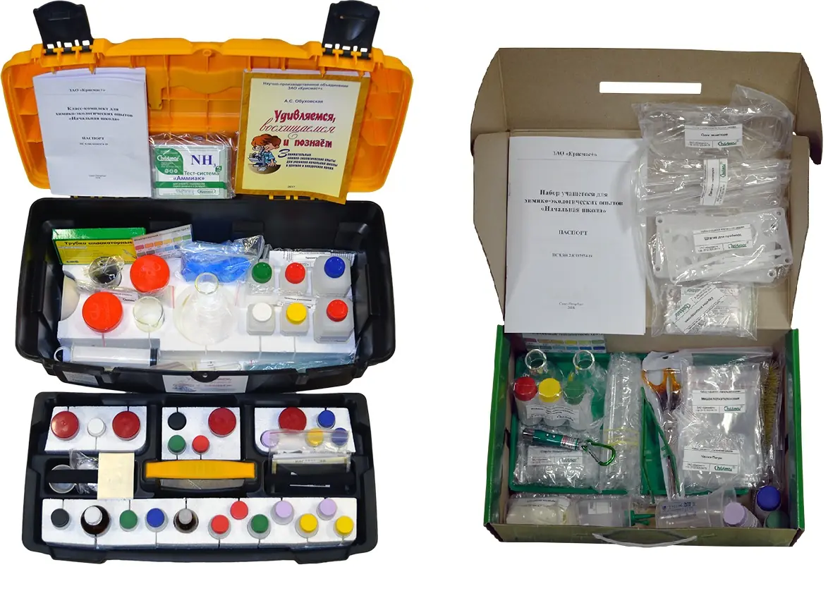 «Начальная школа» Учебно-методический комплект (сокращённый класс-комплект оборудования и материалов для химико-экологических опытов в практикуме "Окружающий мир", 1 набор учителя + 1 наборов учащегося, с пособием)