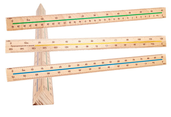 Визирная линейка изготовлена из дерева, представляет собой трехгранную призму. Количество шкал - 6 шт., масштабы: 1:100; 1:200; 1:250; 1:300; 1:400; 1:500, длина шкалы - 300 мм, длина линейки - 320 мм. На нижние края боковых граней визирной линейки нанесены миллиметровые деления. Верхнее ребро линейки служит для визирования при прочерчивании направлений.