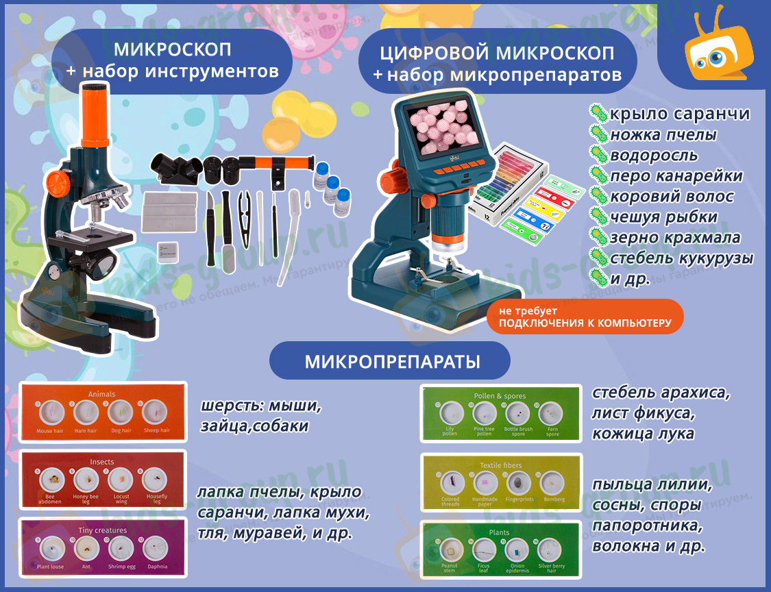Цифровой микроскоп – прибор для исследования объектов любой степени прозрачности. Он подходит для изучения частей растений, насекомых и готовых микропрепаратов. В него можно рассматривать камни, монеты, компоненты электронных приборов и механизмов. Микроскоп также позволяет записывать фото и видео, причем управлять записью можно при помощи беспроводного пульта.