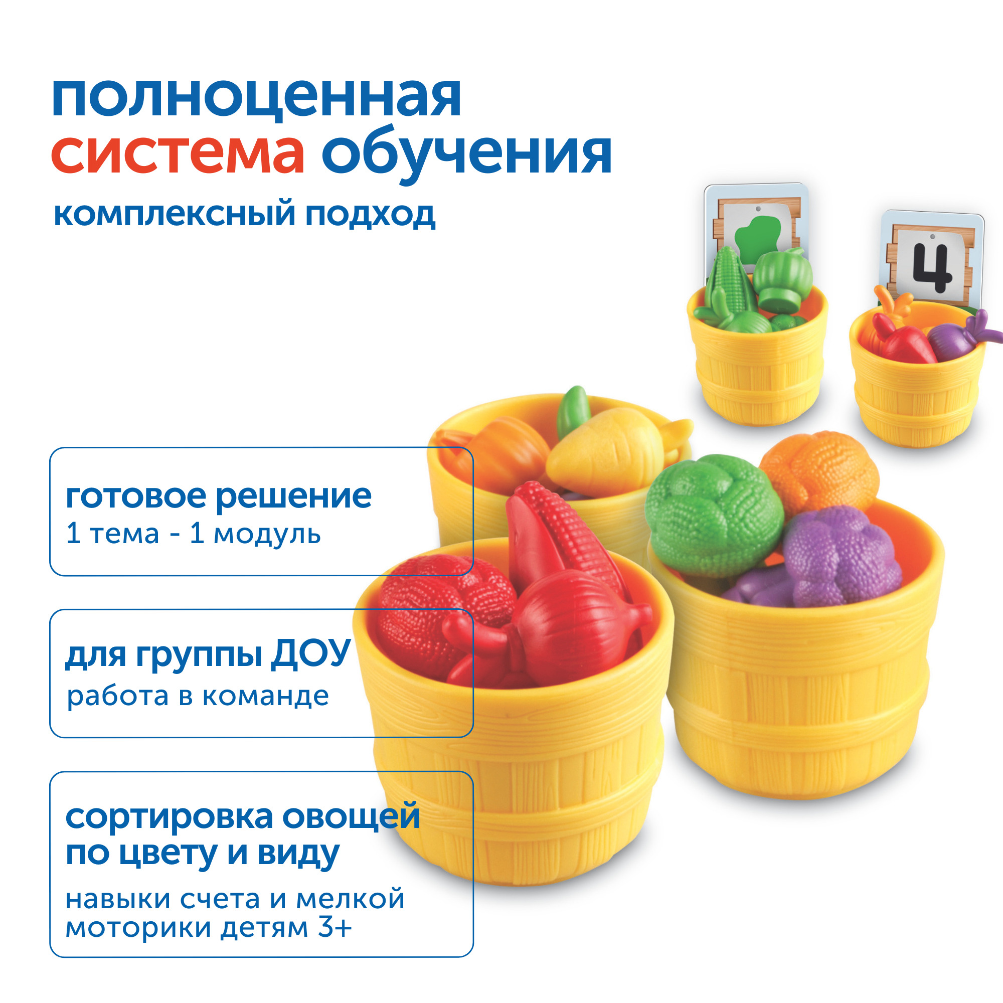Сортировать овощи по цвету и виду, используя карточки и миниатюрные корзиночки.