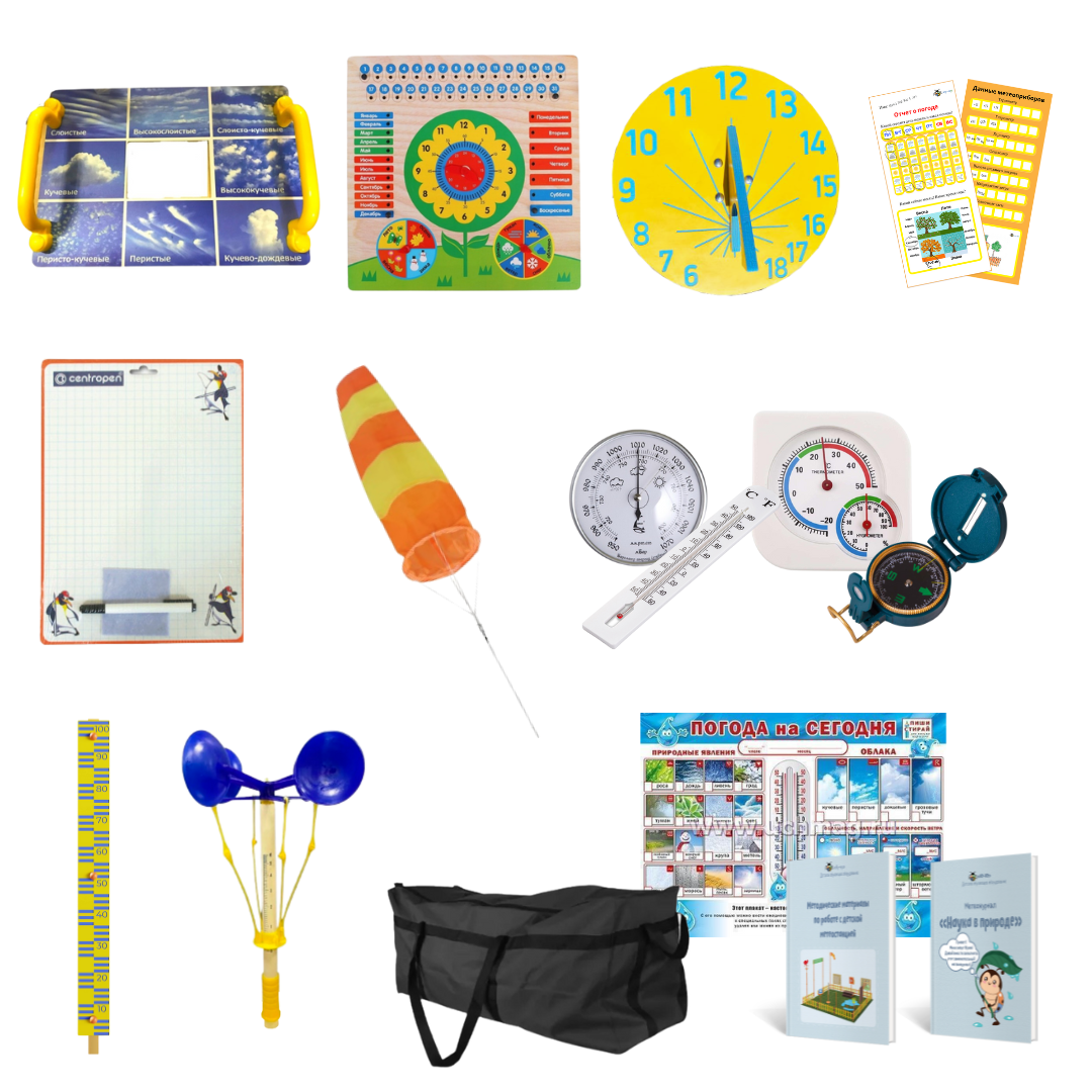 Компактная метеостанция, которая помещается в сумку, позволит выполнить множество различных исследований! Какие задачи можно решать с переносной метеостанцией: измерить скорость, силу и направление ветра, температуру и влажность воздуха, давление, высоту снежного покрова, определить время по солнечным часам, установить тип облаков, а после записать полученные результаты в метеожурнал! Подробнее