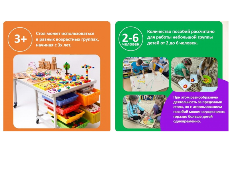 Стол «Конструирование» создан для педагогов дошкольного образования. Может использоваться для организации развивающей предметно – пространственной среды группы – центра «Конструирование» (стать частью центра или полноценным центром активности).