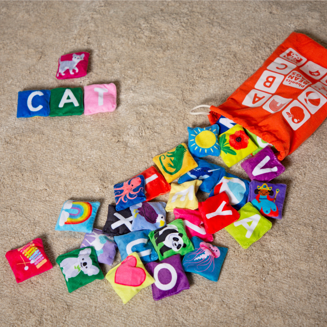 На каждый подушечке вышито изображение. Первая буква названия изображения соответствует букве английского алфавита.
