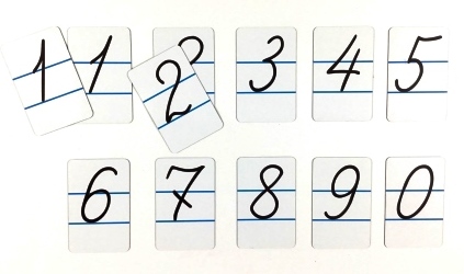 В комплект входят 12 карточек с цифрами размером 9,5 см х 6 см.