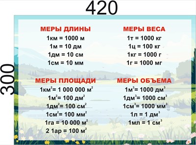 Стенд Меры величин для начальной школы размер 420 х 300 мм, пластик 3мм