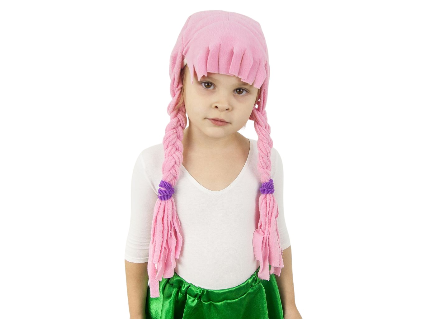 Цвет волос желтый, розовый, цвет фуксии, белый, голубой. Материал: подклад — 100% хлопок, волосы — флис 100% полиэстер. Размер: обхавт головы — 54 — 58 см, высота шапочки — 17 см, длина волос — 40 см.