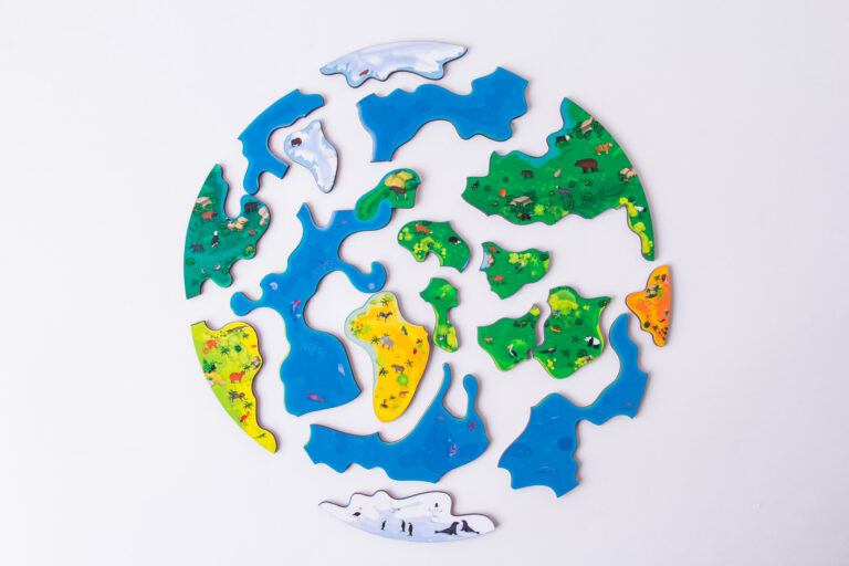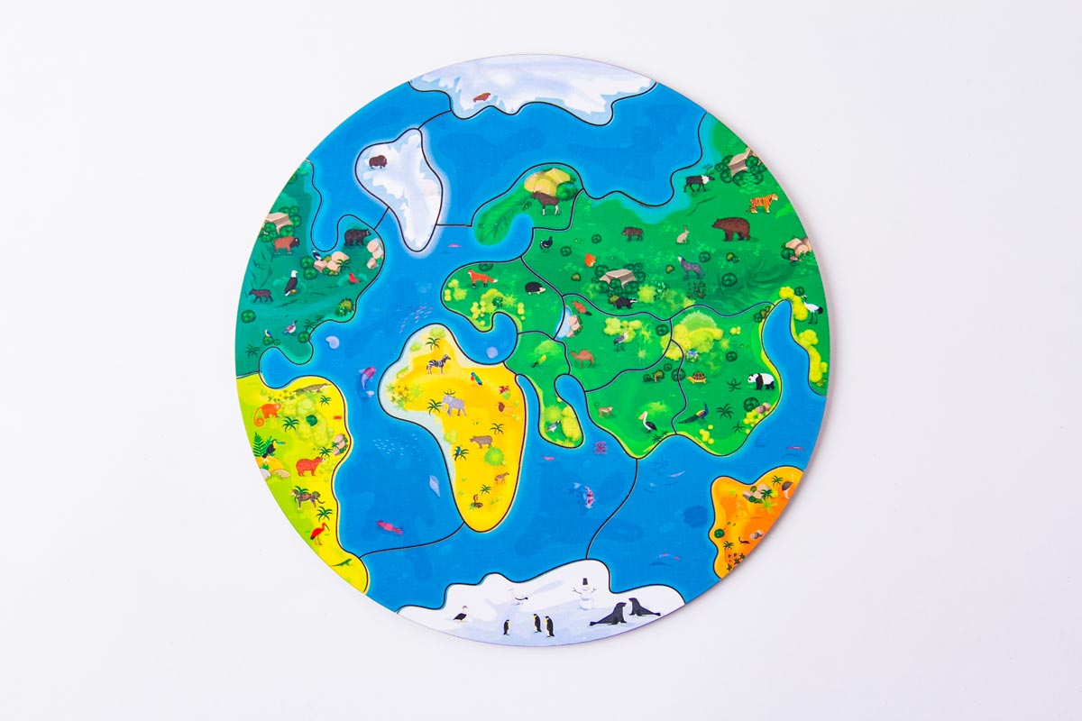 Собрав этот интересный пазл, покажите ребенку настоящий глобус. Расскажите, что глобус – это модель земли. Покажите географическую карту. Так же, как этот пазл – карта показывает материки, и океаны нашей планеты.