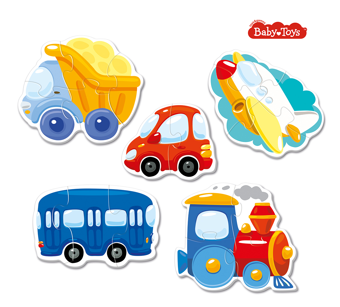 Контурные фигурные пазлы «Транспорт» от Baby Toys. 3+. Состав набора: пазл-автобус из 3-х частей – 1 шт. (размер в собранном виде – 16 х 10 см); пазл-паровоз из 4-х частей – 1 шт. (размер в собранном виде – 14 х 14 см); пазл-машинка из 2-х частей – 1 шт. (размер в собранном виде – 12 х 10 см); пазл-самолёт из 4-х частей – 1 шт. (размер в собранном виде – 16 х 11 см); пазл-грузовик из 5-и частей – 1 шт. (размер в собранном виде – 16 х 14 см). Всего в наборе 5 фигурных пазлов на уникальном пазловом замке. Материал: плотный многослойный картон толщиной 2 мм с односторонней ламинацией с лицевой стороны. Развивает интеллект, логику, мелкую моторику и речь.