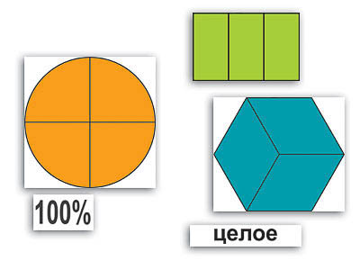 Комплектность: круг без разметки – 1 шт., круги, разделенные на 2, 3, 4, 5 и 6 равных частей – по 1 шт., трапеция, разделенная пополам – 1 шт., шестиугольник, разделенный на 3 равные части – 1 шт., квадрат, разделенный на 4 равные части – 1 шт., пятиугольник, разделенный на 5 равных частей – 1 шт., прямоугольники, разделенные на 3 равные части – 3 шт., прямоугольник 150х95 – 1 шт., прямоугольник 50х95 – 1 шт., карточки "целое", "половина", "треть", "четверть", "1", "1/2", "1/3", "1/4", "1/5", "1/6", "100%", "50%", "25%", "20%" – по 1 шт., руководство по эксплуатации – 1 шт.