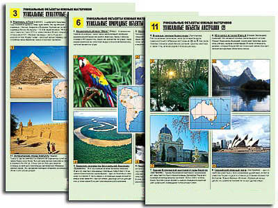 Уникальные природные объекты Африки (1). Уникальные природные объекты Африки (2). Уникальные культурные объекты Африки (1). Уникальные культурные объекты Африки (2). Уникальные культурные объекты Африки (3). Уникальные природные объекты Южной Америки (1). Уникальные природные объекты Южной Америки (2). Уникальные культурные объекты Южной Америки (1). Уникальные культурные объекты Южной Америки (2). Уникальные объекты Австралии (1). Уникальные объекты Австралии (2). Уникальные объекты Антарктиды.