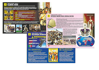 Таблицы: 1. Индустриальная революция. Технический прогресс. 2. Французская буржуазная революция. 3. Завоевательные войны Наполеона. 4. Объединение Германии. 5. Гражданская война в США. 6. Британская империя времен королевы Виктории. 7. Парижская коммуна 1871 г. – первая пролетарская революция. 8. Основные идеи общественно-политических учений ХIХ в. 9. Международные противоречия накануне Первой мировой войны. 10. Архитектура Индустриальной эпохи.