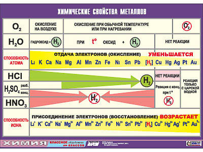 Таблица демонстрационная "Химические свойства металлов" (винил 100х140)