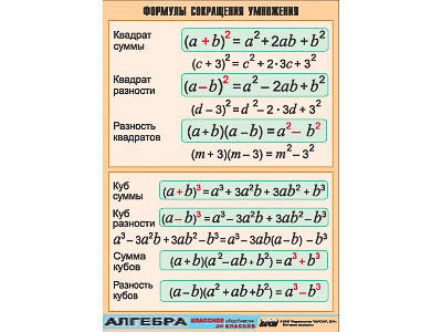 Таблица демонстрационная "Формулы сокращения умножения" (винил 100х140)