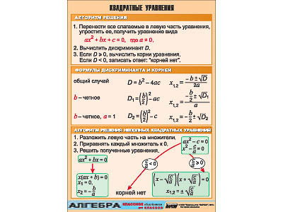 Таблица демонстрационная "Квадратные уравнения" (винил 70х100)