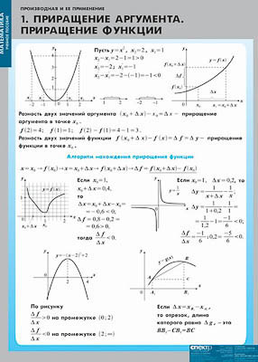 Приращение аргумента. Приращение функции. Производная. Физический производной. Касательная к кривой. Геометрический смысл производной.. Критические точки функции. Монотонные и немонотонные функции. Экстремумы функции. Исследование функции на экстремум. Наибольшее и наименьшее значение непрерывной функции.. Исследование функции с помощью производной. Построение графика функции с помощью производной. Применение производной. Решение задач с параметрами.Раздаточный материал - карточки 48 шт.