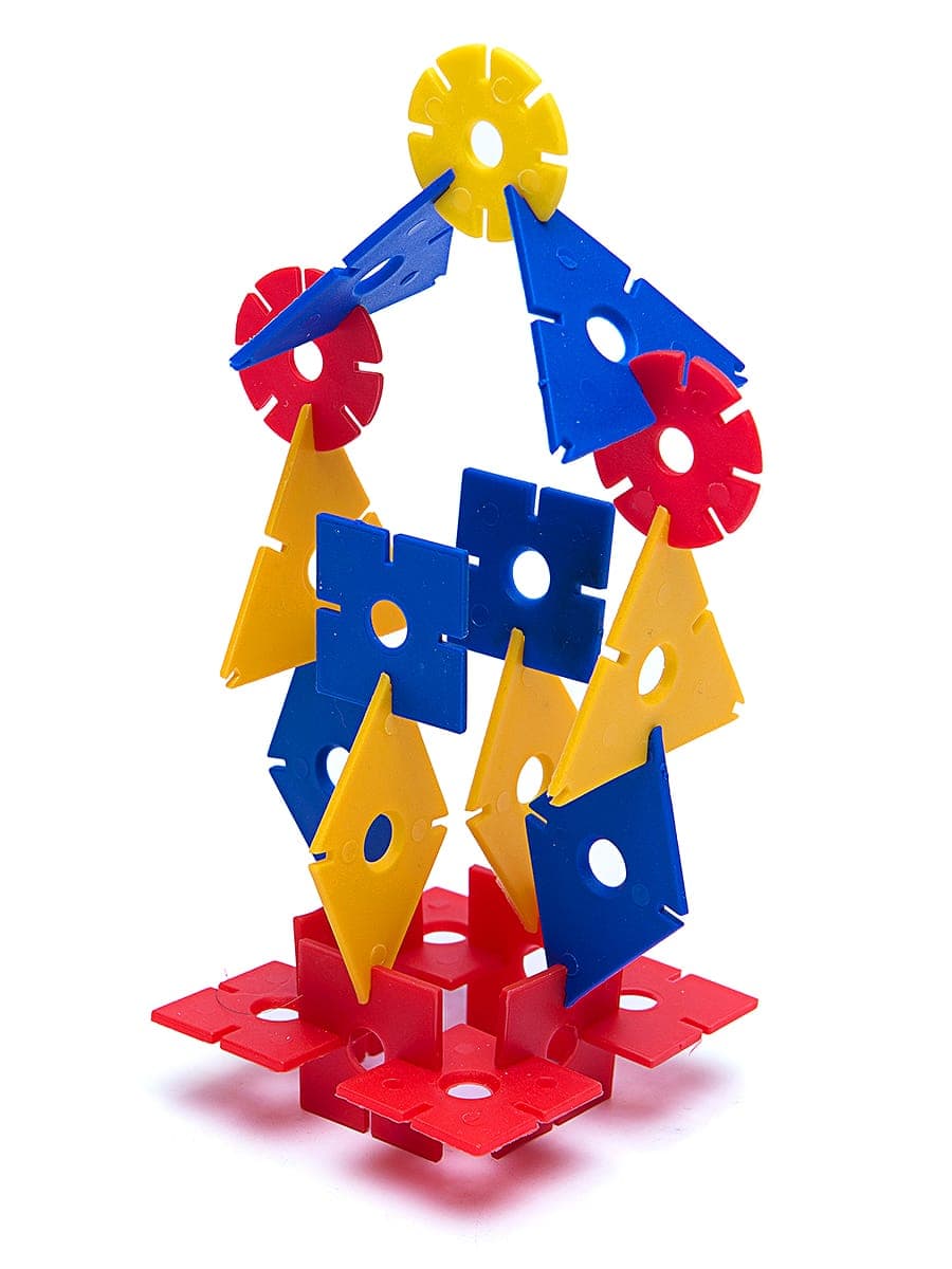 В комплект входят плоские геометрические фигуры (квадрат, ромб, треугольник, круг) с прорезями для соединения. Фигуры четырех цветов. Комплект конструктора отличается от «малого» большим размером и толщиной.
