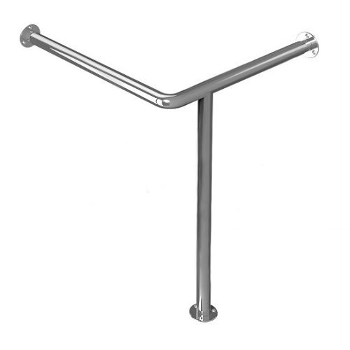 Поручень для раковины угловой ПРУ нержавеющая сталь d-38, предназначен для создания комфортных условий для инвалидов в санитарных комнатах, вокруг раковины. Имеет 2 опоры к стене и 1 в пол, что повышает опорную нагрузку и особо актуально при монтаже в стену с полой конструкцией. Каждая опора-фланец имеет по 3 отверстия для крепления.
