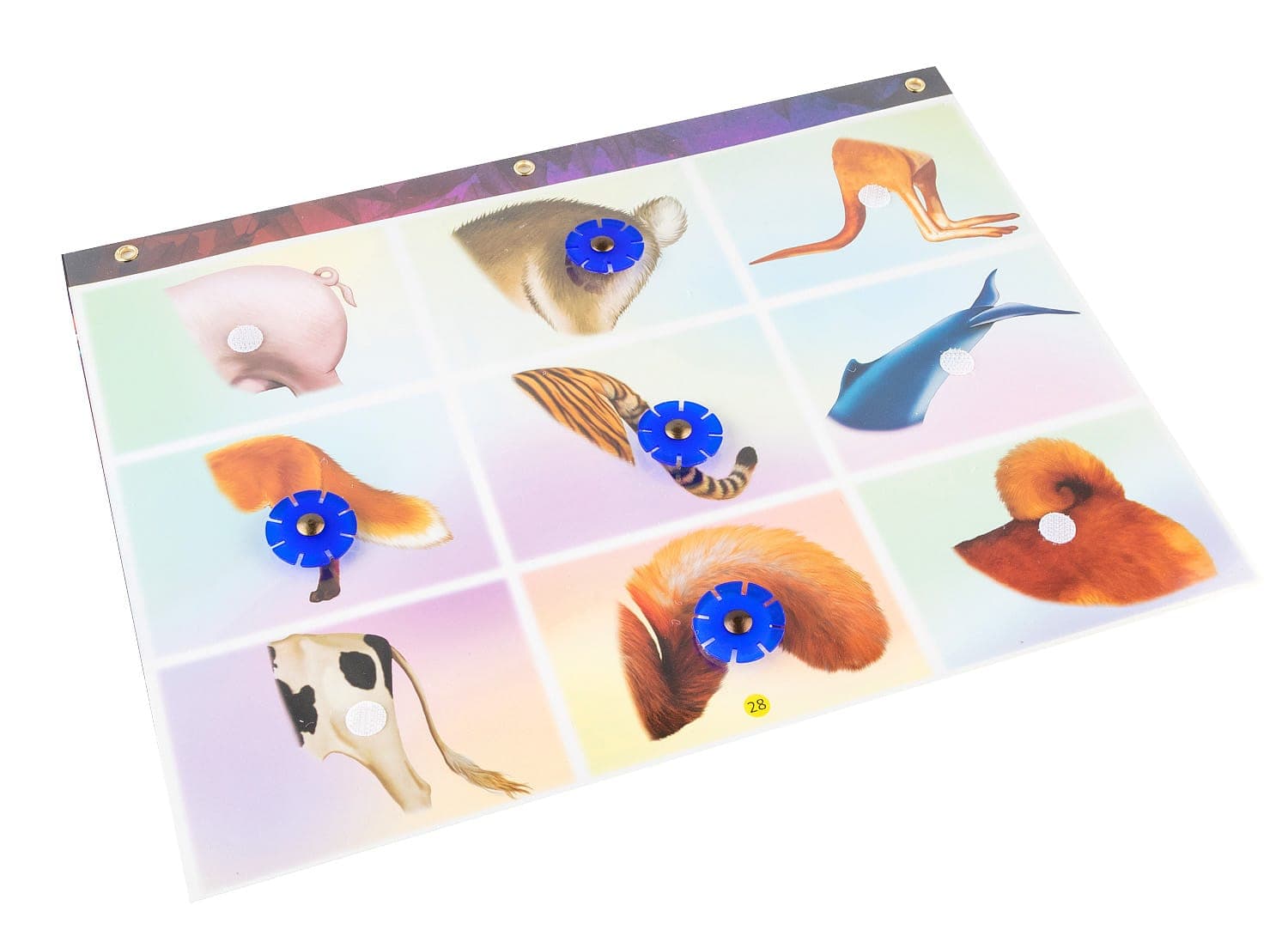 Не снимая фишек с экрана, переворачивает лист. Рисунок под фишкой подтверждает правильность ответа или ошибку.