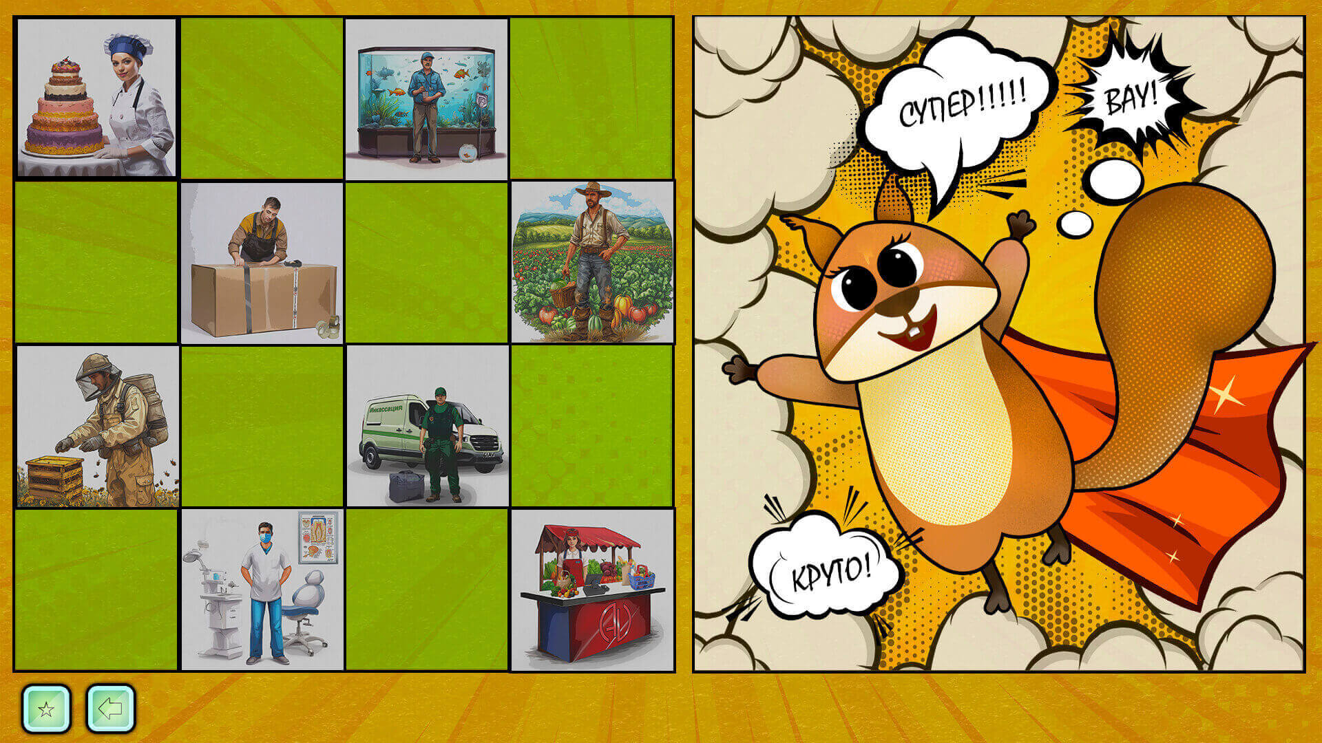 Функционал программы позволяет детям выбрать профессию, которая их заинтересовала и изучить это профессиональное направление - овладеть знаниями и навыками, а яркая, красочная современная стилистика комикса и персонаж-помощник Белочка создадут еще больший интерес у детей в данном направлении. Подробнее