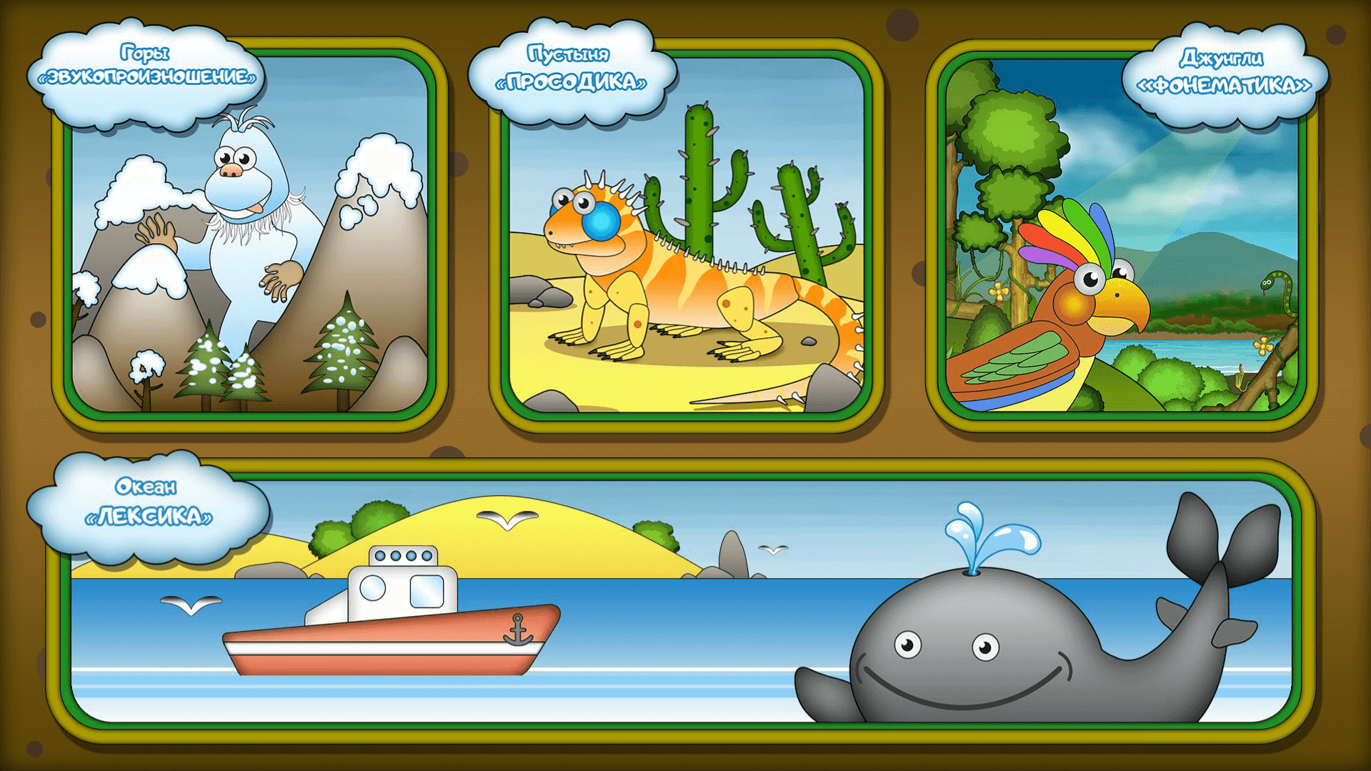 Логопедическая программа «ЛогоСтрана» содержит 4 раздела: